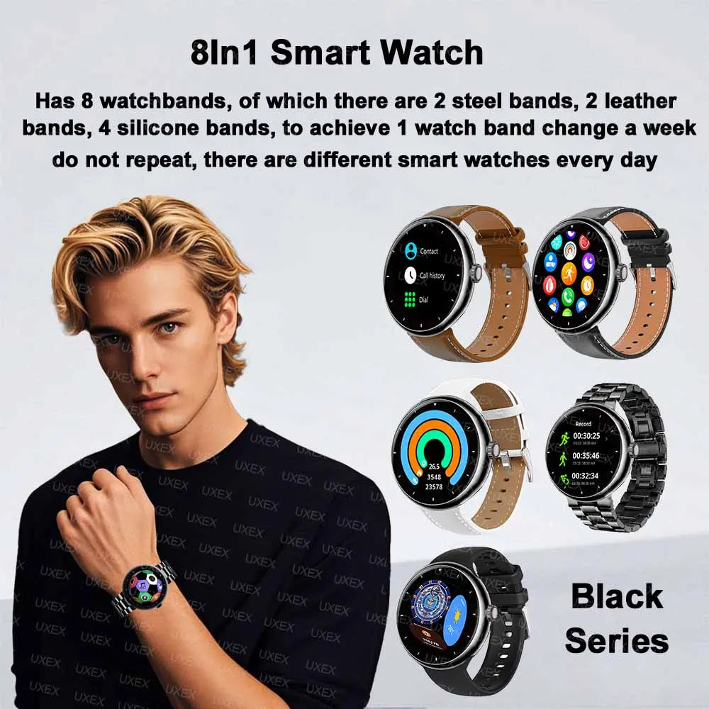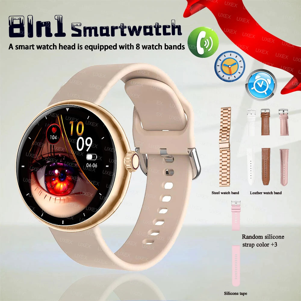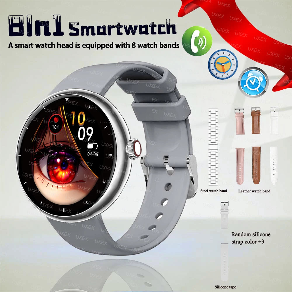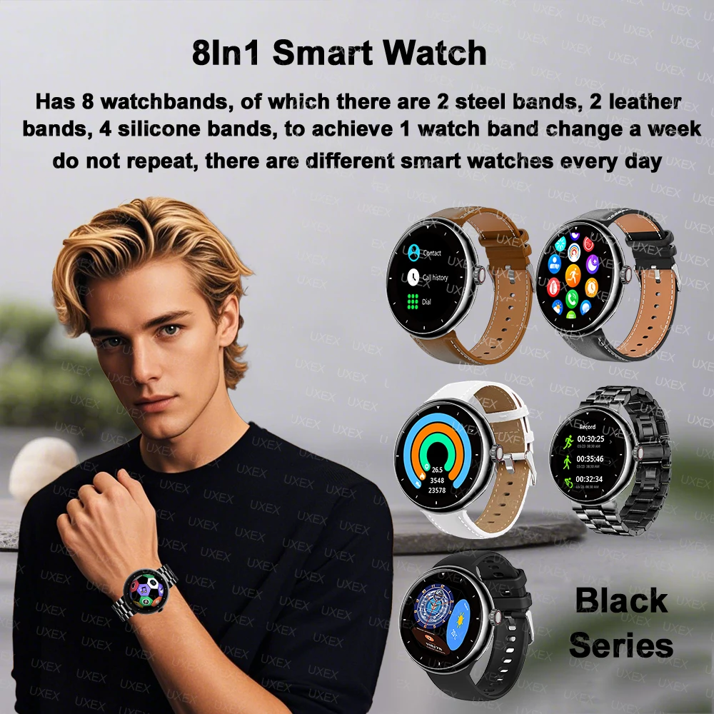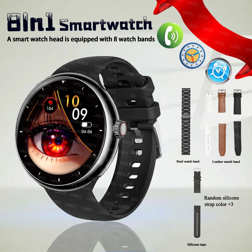 8In1 Smart Watch: Has 8 watchbands, of which there are 2 steel bands, 2 leather bands, 4 silicone bands, to achieve 1 watch band change a week, do not repeat, there are different smart watches every day