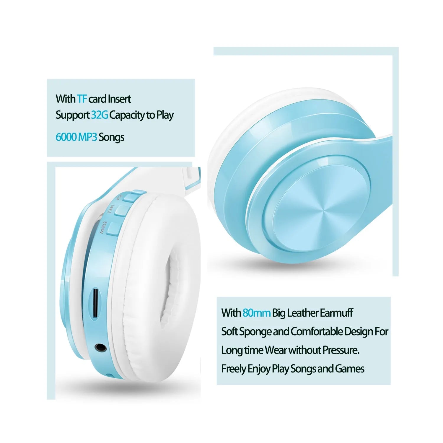 New Arrival Macaron Colors Stereo Audio Mp3 Bluetooth Headset Wireless Headphone Earphone Support SD Card with Mic Play 20 Hours