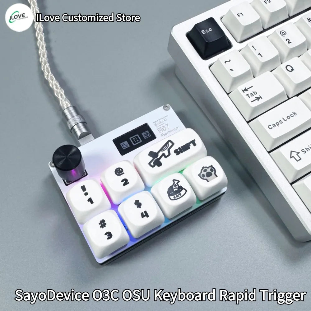 SayoDevice O3C OSU Keyboard Rapid Trigger Hall Switches Magnetic Linear Switches Keyboard with Knob and Screen,Copy Paste,Shotcut,Macro Hotswap Mini Keypad